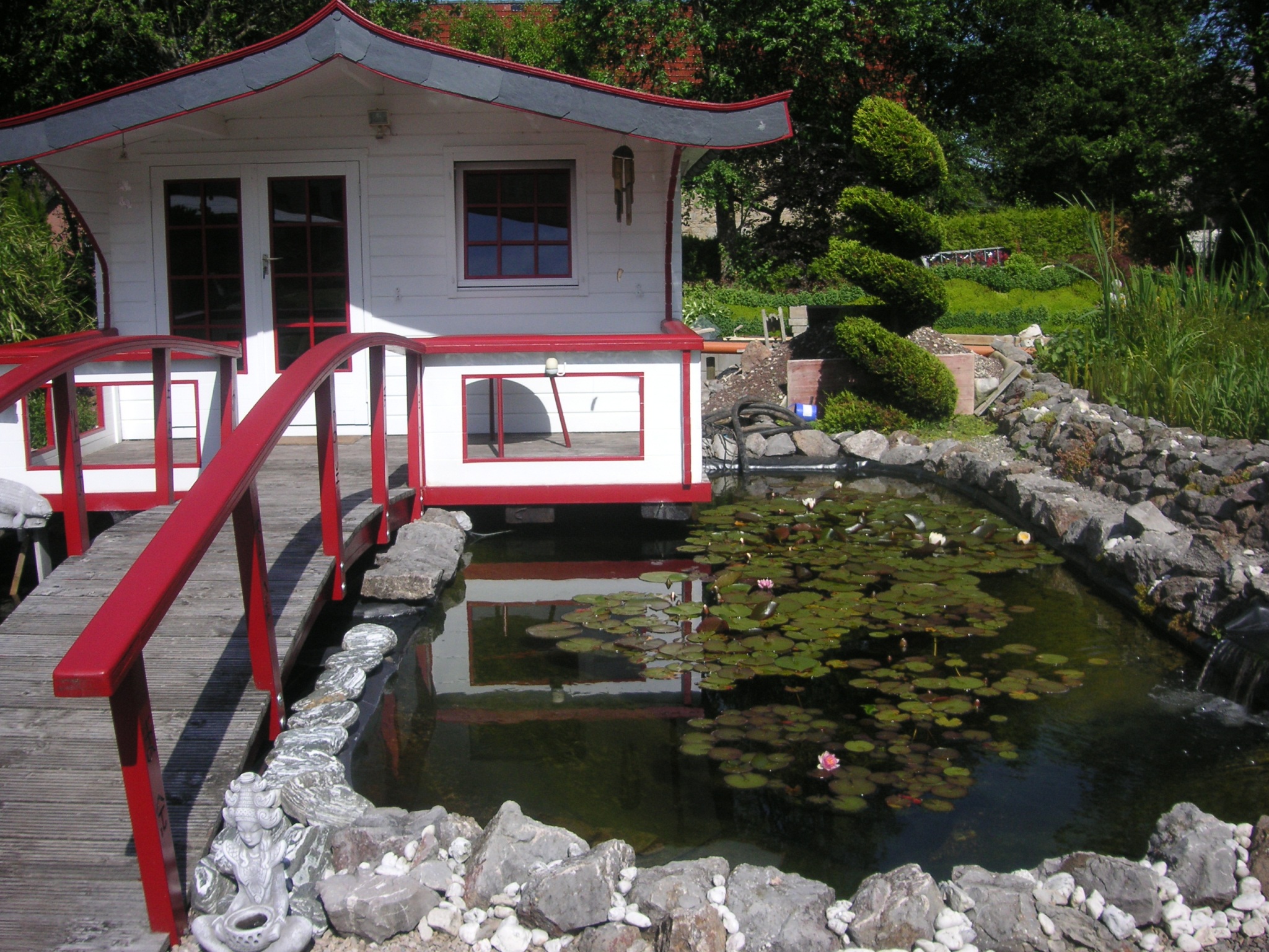 | Blick vom Gartenhaus aus Blick zum Gartenhaus | |